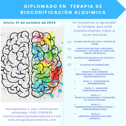 Súmate a las millones de personas en todo el mundo que han decidido superar el dolor y la tristeza a través de una terapia, así como tú han comprendido que para tener una vida plena y buena salud, es necesario sanar desde el interior, ahí está la llave de la sanación y si te encuentras en el camino del aprendizaje, te invito a desarrollarte más hacia la realización personal, tomando uno o varios de los cursos de formación terapéutica o talleres para la evolución espiritual que encontrarás en este lugar.